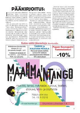 tain erilaista, on siihen teoriassa mah- Muutoin arki rullaa perinteiseen ta- le on kaupungissa paljonkin tarjontaa.