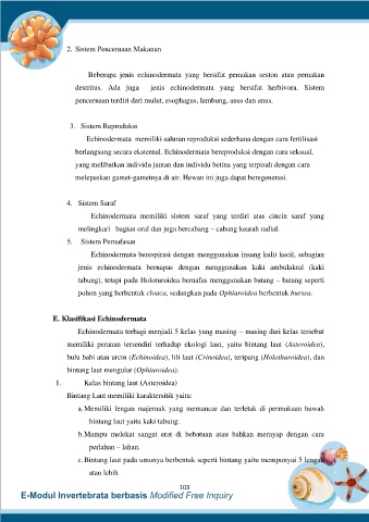 destritus. Ada juga jenis echinodermata yang bersifat herbivora. Sistem