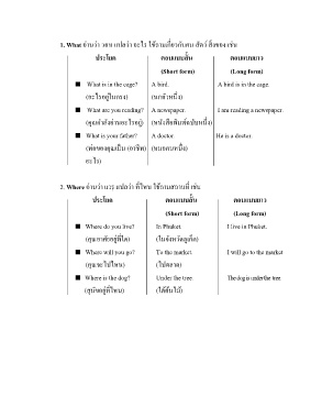 ประโยค ตอบแบบสั้น ตอบแบบยาว