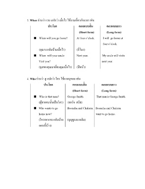 ประโยค ตอบแบบสั้น ตอบแบบยาว