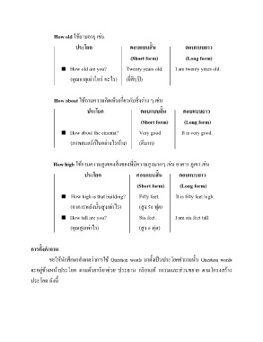 ประโยค ตอบแบบสั้น ตอบแบบยาว