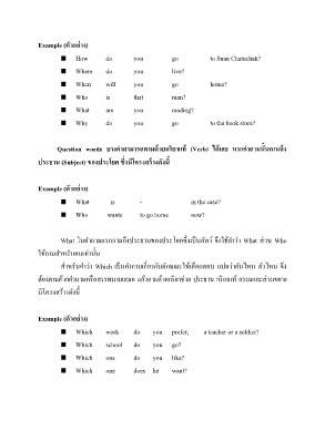 Question words บางค าสามารถตามด้วยกริยาแท้ (Verb) ได้เลย หากค าถามนั้นถามถึง