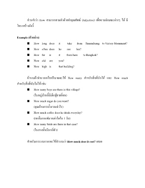 ส่วนค าว่า How สามารถตามตัวด้วยค าคุณศัพท์ (Adjective) เพื่อถามลักษณะต่างๆ ได้ มี