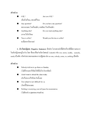 3. ประโยคปฏิเสธ (Negative Sentence) คือประโยคบอกเล่าที่มีค าหรือวลีที่มีความหมาย