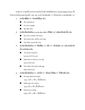 4. ค ากริยาที่ลงท้ายด้วย “y” แต่หน้า “y” เป็นสระให้เติม “s” ไปข้างท้าย เช่น