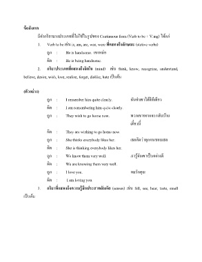 มีค ากริยาบางประเภทที่ไม่ใช้ในรูปของ Continuous form (Verb to be + V.ing) ได้แก่