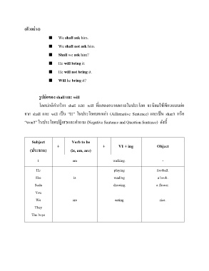 “won't” ในประโยคปฏิเสธและค าถาม (Negative Sentence and Question Sentence) ดังนี้