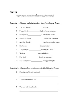 Exercise 2 Change these sentences into Past Simple Tense.