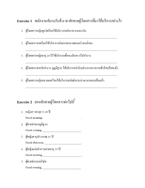 Exercise 1 พนักงานขับรถรับจ้าง จะทักทายผู้โดยสารที่มาใช้บริการอย่างไร