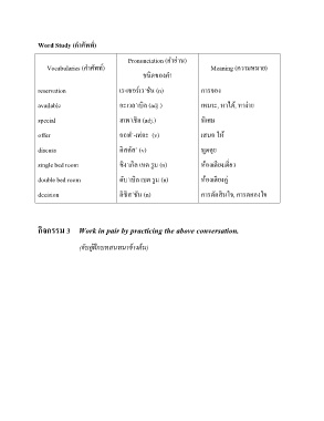 กิจกรรม 3 Work in pair by practicing the above conversation.