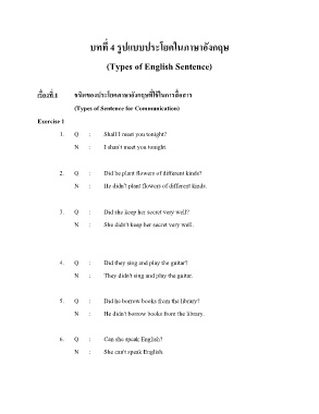 เรื่องที่ 1 ชนิดของประโยคภาษาอังกฤษที่ใช้ในการสื่อสาร