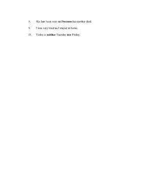 8. She has been very sad because her mother died. 9. I was very tried so I stayed at home. 10. Today is neither Tuesday nor Friday.