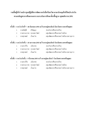 รายชื่อผู้เข้าร่วมประชุมปฏิบัติการพัฒนาหนังสือเรียนวิชาภาษาอังกฤษในชีวิตประจ าวัน