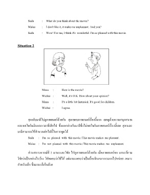 ส่วนสถานการณ์ที่ 2 มานะและวิชัย ไปดูภาพยนตร์ด้วยกัน เมื่อภาพยนตร์จบ มานะก็ถาม