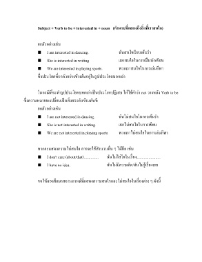 Subject + Verb to be + interested in + noun (ค านามที่แสดงถึงสิ่งที่เราสนใจ)