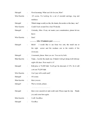 Salesgirl : Good morning. What can I do for you, Miss?