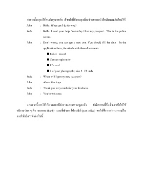 Suda : Hello. I need your help. Yesterday I lost my passport. This is the police