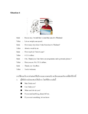 Suda : Excuse me, I would like to send this parcel to Thailand.