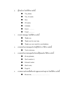 5. การตอบรับการขอบคุณส าหรับคนที่คุ้นเคยกัน ใช้ส านวนดังนี้