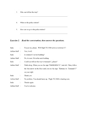 Airline Staff : Walk along. When you see the sign "EMERGENCY", turn left. Then, follow