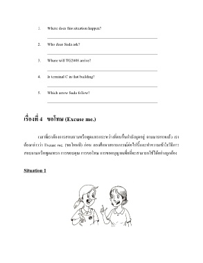 ต้องกล่าวว่า Excuse me. (ขอโทษที) ก่อน ลองศึกษาสถานการณ์ต่อไปนี้และท าความเข้าใจวิธีการ