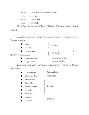หากเราท าอะไรผิดก็ต้องกล่าวขอโทษ (Apologies) ซึ่งการกล่าวขอโทษสามารถใช้ส านวน
