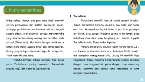 (cacing isap), dan Cestoda (cacing pita). bagian tubuhnya dan bagian yang terpotong ini akan