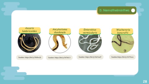 Ascaris Ancylostoma lumbricoides Enterobius Wuchereria duodenale vermicularis bancrofti Sumber: https://bit.ly/3h0bwJd Sumber: https://bit.ly/3h7btLY Sumber: https://bit.ly/3dc5unT Sumber:https://bit.ly/3zVXzos 28