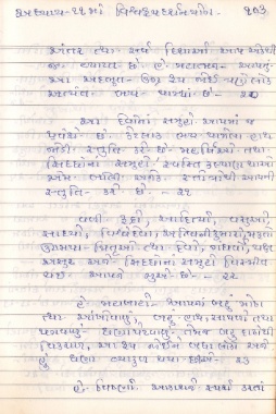 Page 106 - શ્રી ધરમશીભાઈ ગોવિંદભાઇ પટેલની પ્રથમ વાર્ષિક પુણ્યતિથિએ શ્ર્ધાસુમન. પ્રસાદ સ્વરૂપે એમના સ્વ હસ્તે લખેલ શ્રીમદભગવદગીતા