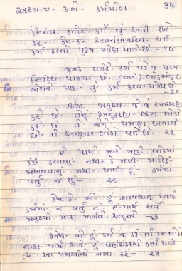 Page 42 - શ્રી ધરમશીભાઈ ગોવિંદભાઇ પટેલની પ્રથમ વાર્ષિક પુણ્યતિથિએ શ્ર્ધાસુમન. પ્રસાદ સ્વરૂપે એમના સ્વ હસ્તે લખેલ શ્રીમદભગવદગીતા