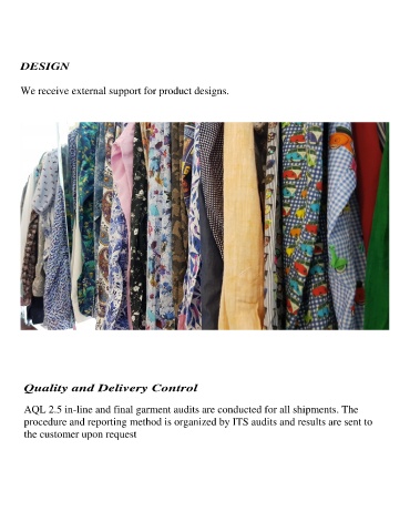 AQL 2.5 in-line and final garment audits are conducted for all shipments. The