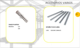 ACCESORIOS VARIOS 29 CHAZO PLASTICO MEDIDA: 1/4 ESTAÑO 70-30 X LIBRA 3/8 USO: SOLDAR CANALES 29