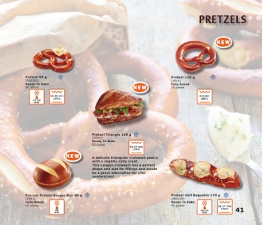 (40135) (40150) Pre-cut Pretzel Burger Bun 80 g Pretzel Half Baguette 170 g