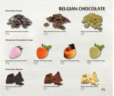 Dark Chocolate Drops 53.80% Milk Chocolate Drops 33.60% White Chocolate Drops 28%