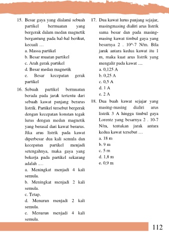15. Besar gaya yang dialami sebuah 17. Dua kawat lurus panjang sejajar,