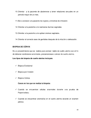 10. Orientar a la paciente de abstenerse a tener relaciones sexuales en un