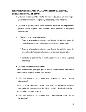 CUESTIONARIO DE COLPOSCOPIA, LAPAROSCOPIA DIAGNOSTICA,