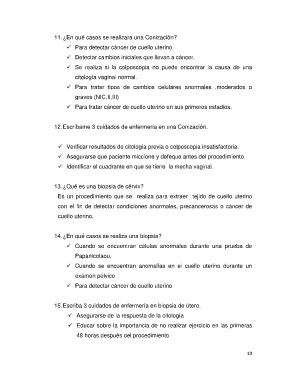 12. Escríbame 3 cuidados de enfermería en una Conización.
