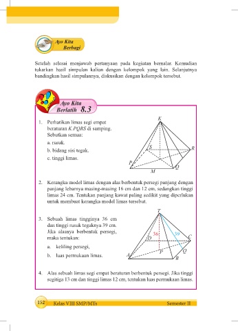 4. Alas sebuah limas segi empat beraturan berbentuk persegi. Jika tinggi