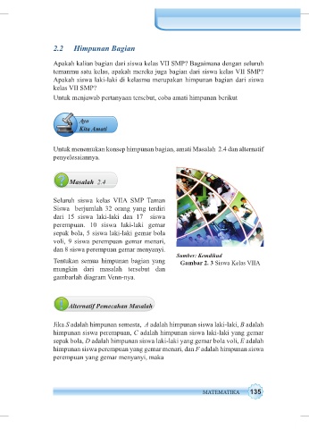 Untuk menemukan konsep himpunan bagian, amati Masalah 2.4 dan alternatif
