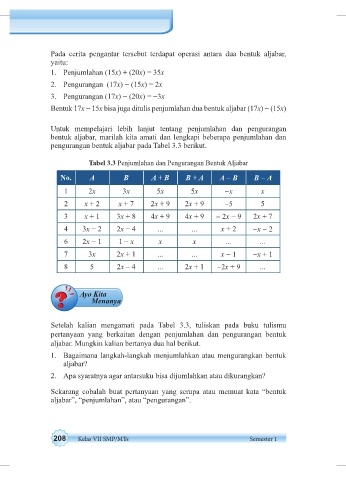 Tabel 3.3 Penjumlahan dan Pengurangan Bentuk Aljabar