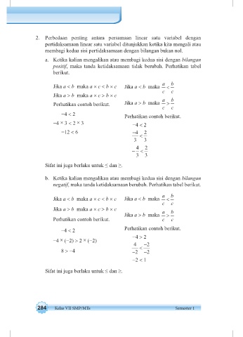 negatif, maka tanda ketidaksamaan berubah. Perhatikan tabel berikut.