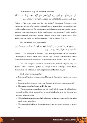(kecurigaan) karena sebagaian dari berburuk sangka itu dosa. Dan janganlah mencari-