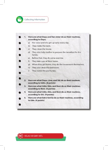 2. Here are what Dayu, Lina, and Siti do as their routines,