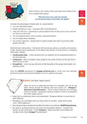 It also requires acute awareness of the biases (see section 6) that prevent us listening