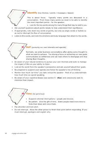 • Look for the key points among the many things that may be said to you.