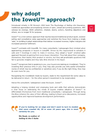 differentiate themselves from more traditional consultants / salespeople. Through doing