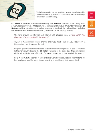 CC Notes clarify the shared understanding and confirm the next steps. They are a