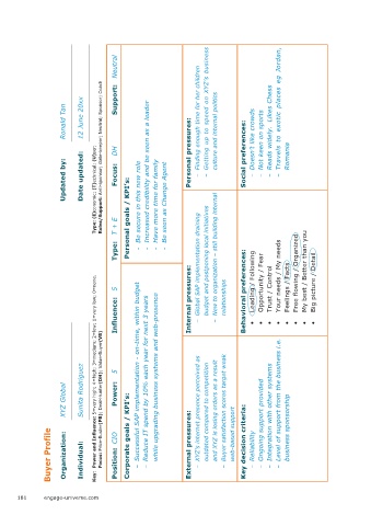 Buyer Profile Organization: Individual: Key: Position: CIO Corporate goals / KPI’s: – – External pressures: – – web-based support Key decision criteria: Reliability – – – – business sponsorship