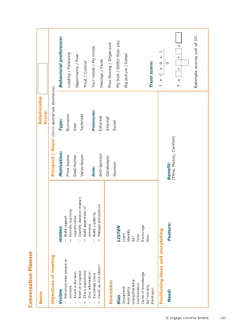 Conversation Planner Name Objectives of meeting Visible Introduce new people or services Reach a decision Brief on progress Share experience Give information Exchange views Come up with ideas— Remember Groupthink Availability Liking/Disliking Confiemation Curse of Knowledge Self-serving Blind-spot Positioning ideas and storytelling Need: